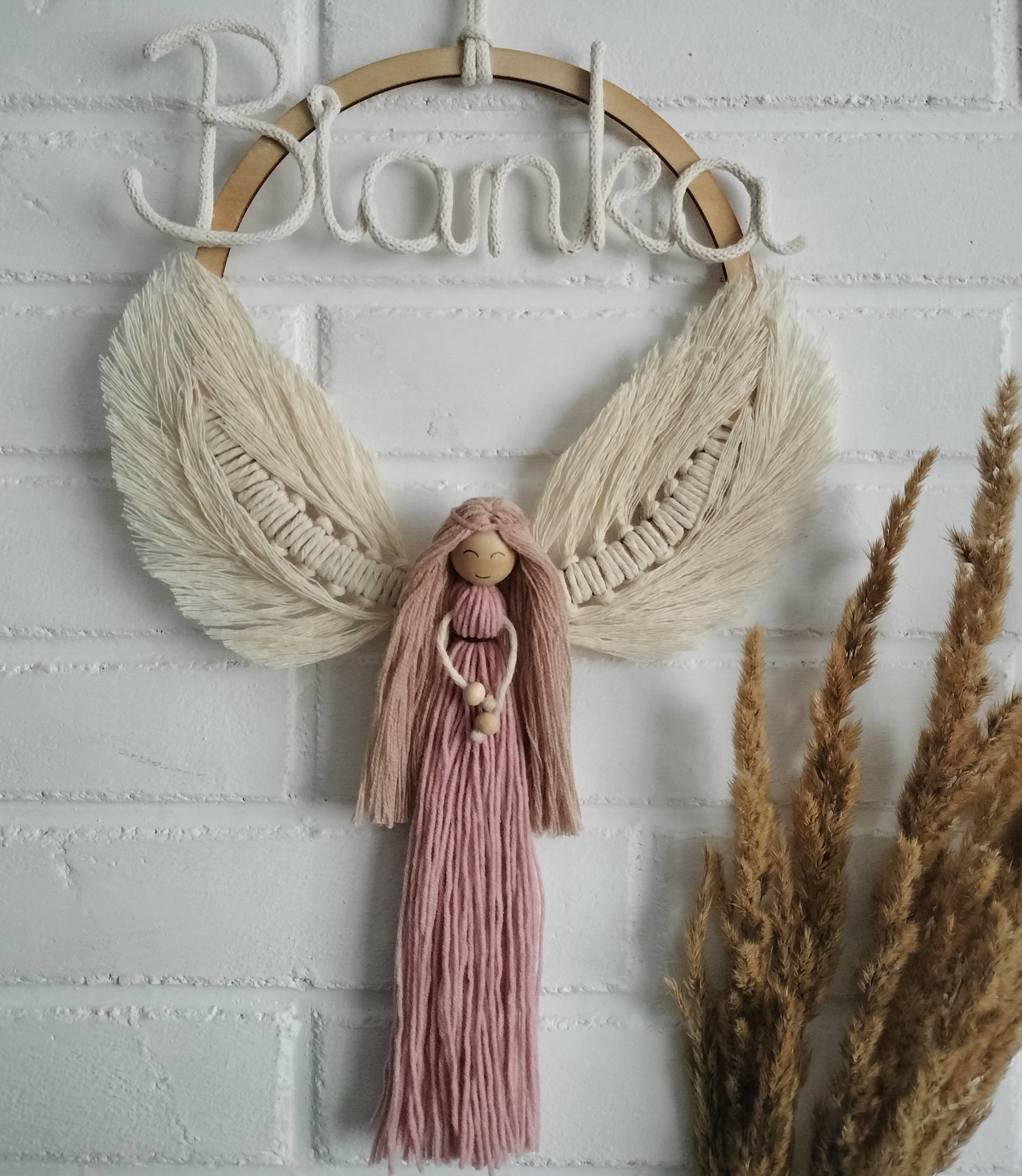 makrama aniołek to idealny sposób na udekorowanie wnętrza pokoju dziecięcego.