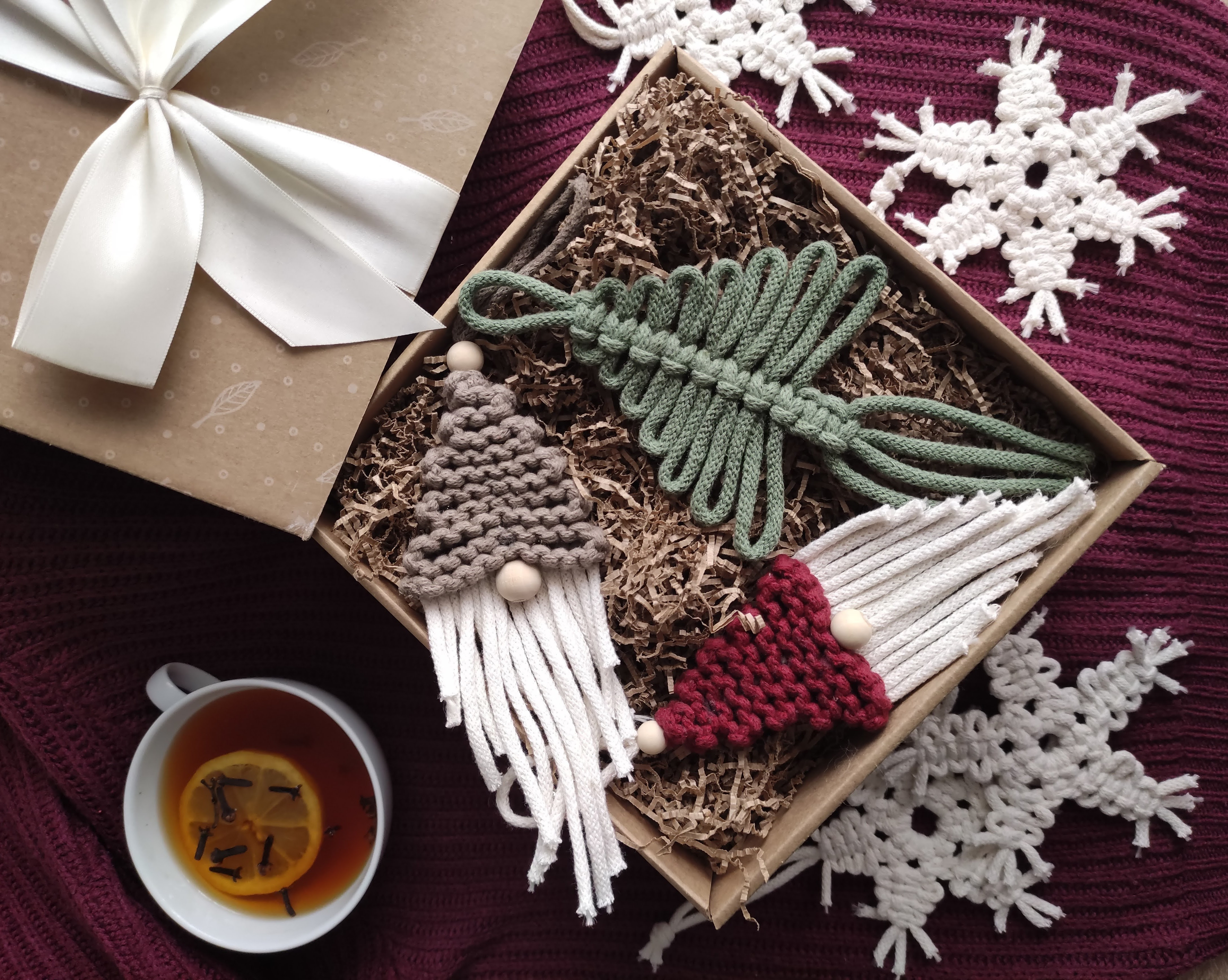 mikołaj wykonany jest ze sznurka bawełnianego.