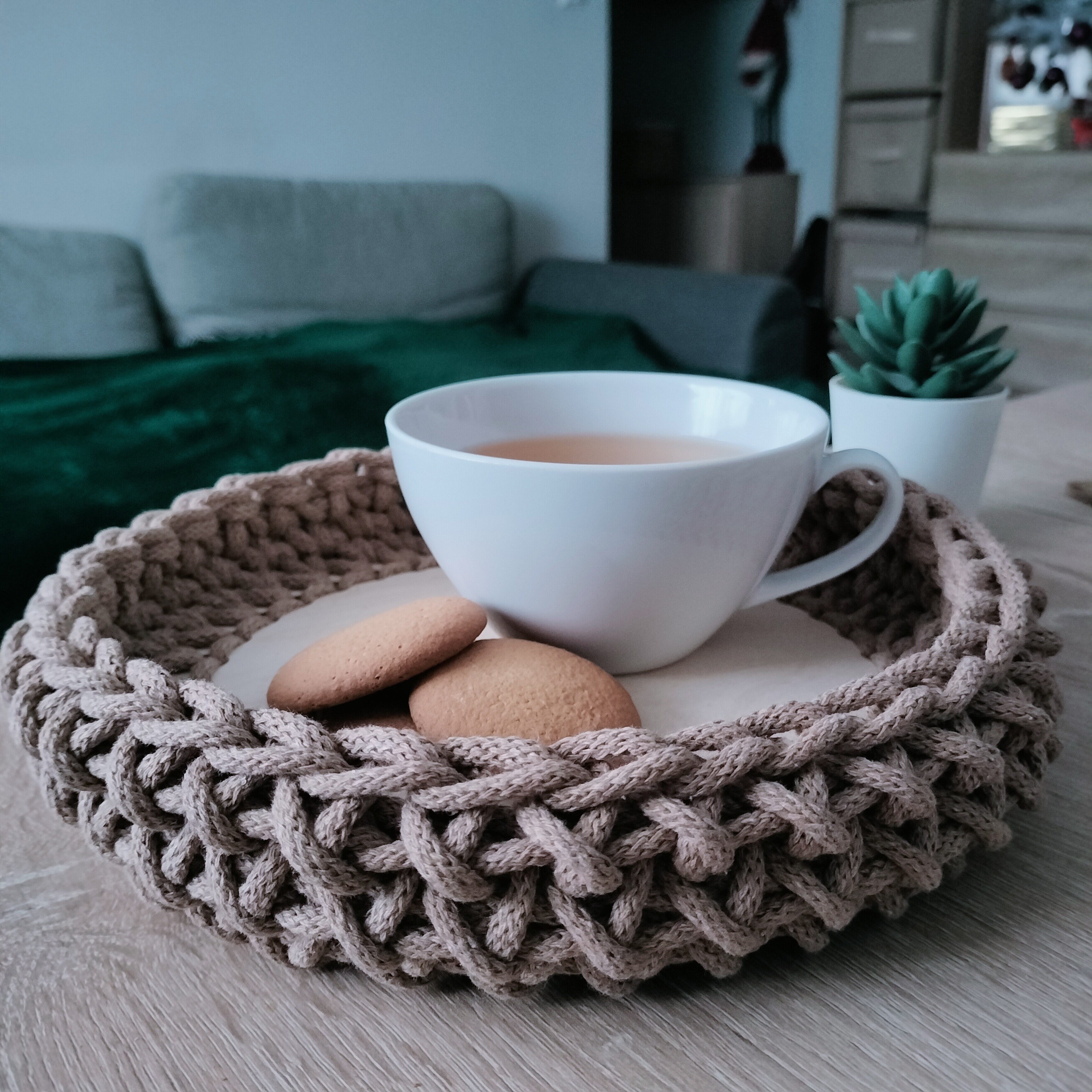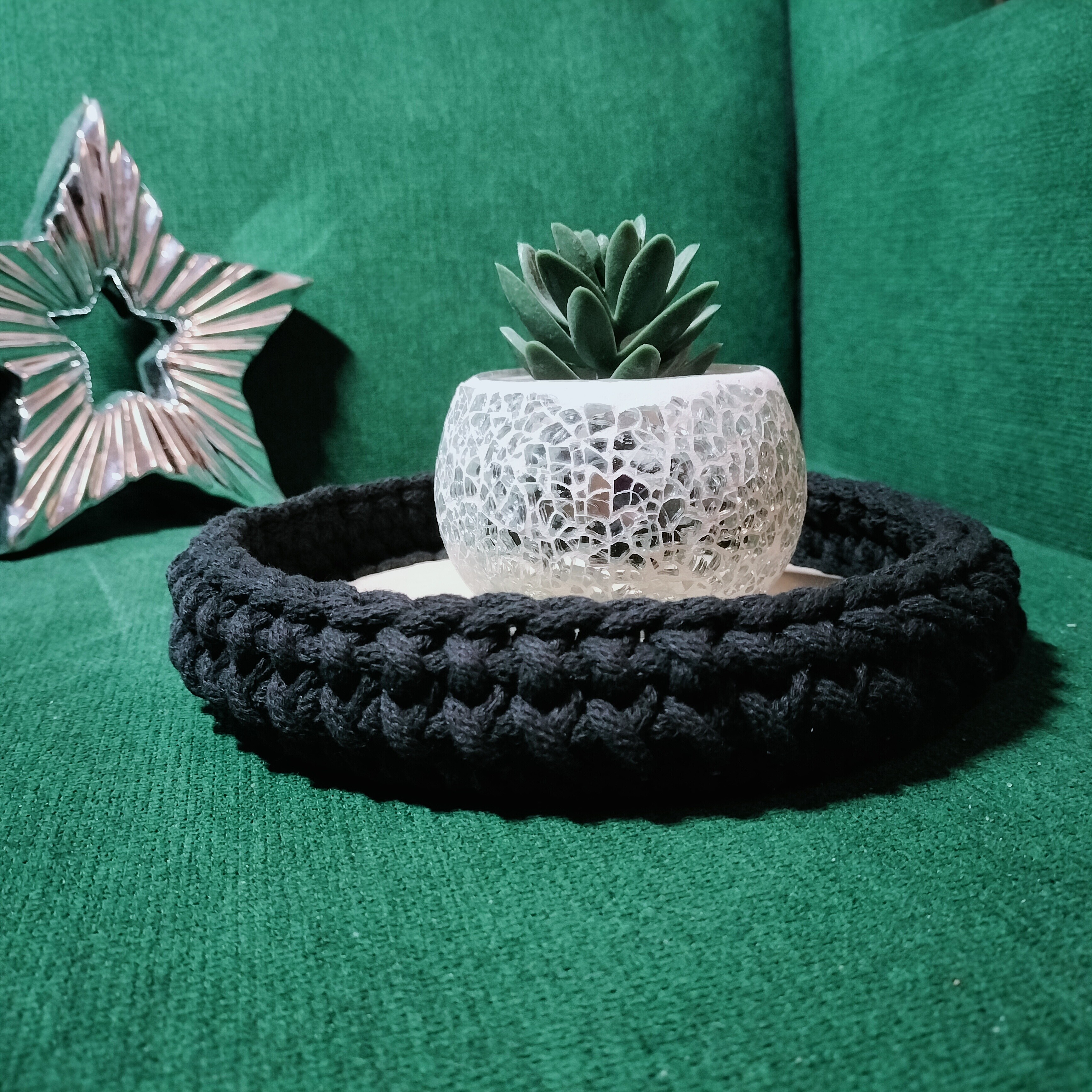 niski, makramowy koszyczek jest świetnym sposobem na wyeksponowanie twoich domowych dekoracji.